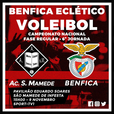 Informação do Jogo: https://www.slbenfica.pt/pt-pt/agora/noticias/2019/11/09/voleibol-direto-sao-mamede-benfica-6-jornada-campeonato-nacional